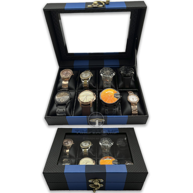 Con capacidad para 8 relojes, almohadillas suaves y un diseño premium, tendrás tu colección siempre protegida, visible y lista para usar.