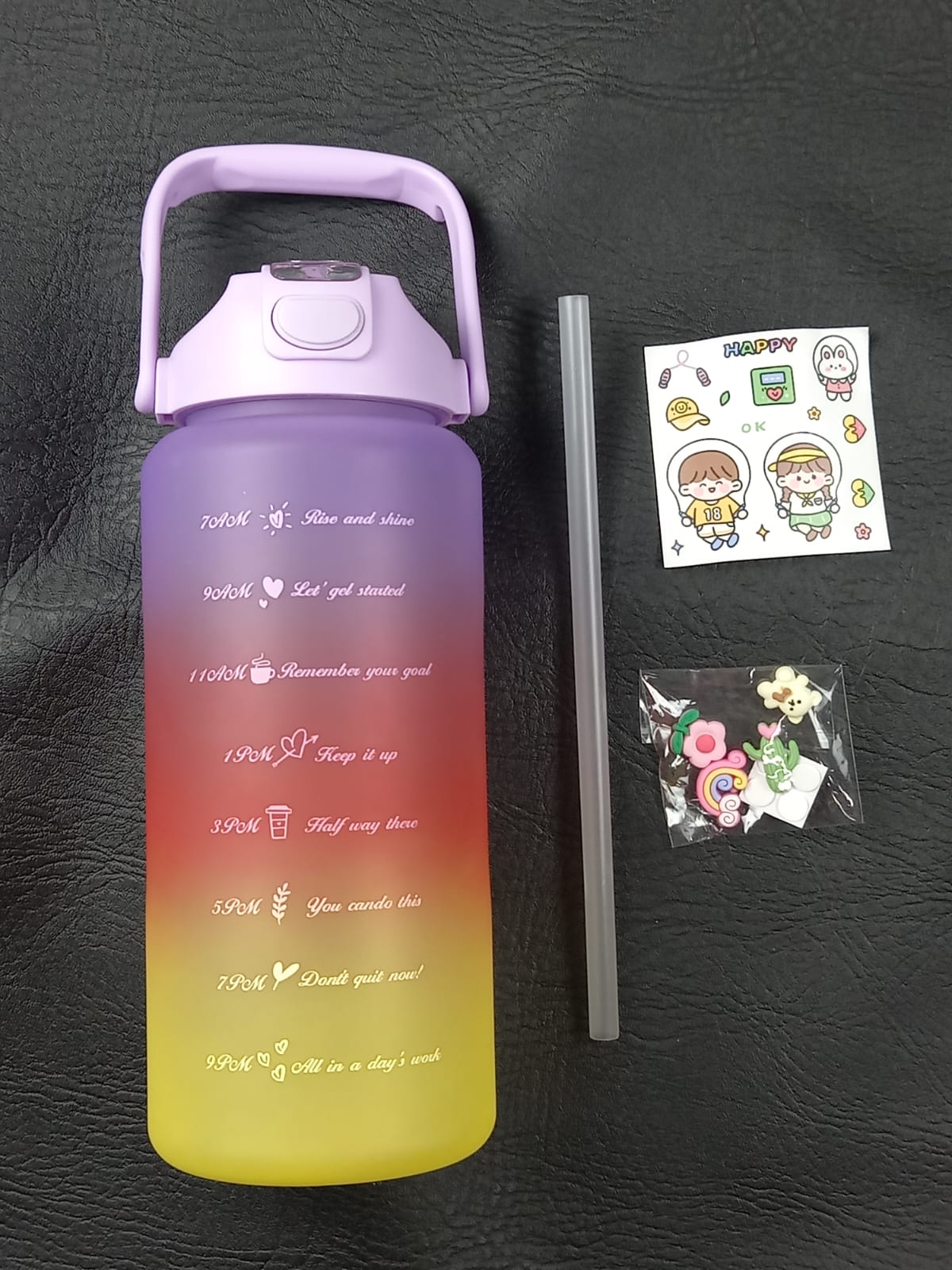 🌈 ¡Tu solución llegó! La Botella Deportiva Motivacional de 2 L está diseñada para acompañarte todo el día, mantenerte hidratad@ sin esfuerzo y darle un toque único y divertido a tu rutina.
